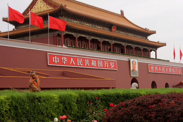 This is a picture of the lawn in front of Tienanmen Gate. What I liked most about this photo was that it encompassed on one end, the gardener working on the shrubs, and at the other end, the iconic portrait of Chairman Mao wearing his Mao suit. Before the Mao suit was called as such, it was originally the Chinese equivalent to the Western business suit, but after Mao took power in 1949, he tried to get everyone to wear these suits so that no one would be seen as better off than the next person. It was part of his vision to bring a sense of equality to the working class. It's hard to measure, even now, the progress Mao contributed to that vision. But, these days, the population is absolutely stratified by income and wealth. And this photo really captures a bit of that irony; Mao had always championed for the laborers and this photo illustrates almost a reversal of the status of the working class in modern Chinese society, even under the eternal gaze of the Chairman himself.