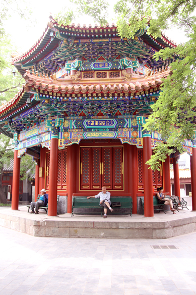 This is the Younghe Temple, also known as the Lama Temple, in Beijing. It is one of the largest Tibetan Buddhist temples in the world and is also where many monks come to study. I was hoping to get much better pictures here, but following the trend I've seen at other temples, they don't allow pictures inside, so I had to settle for this photo taken from outside. There were a lot of people burning incense and the place was really peaceful, so peaceful that I even decided to take a nap on one of the park benches. :)