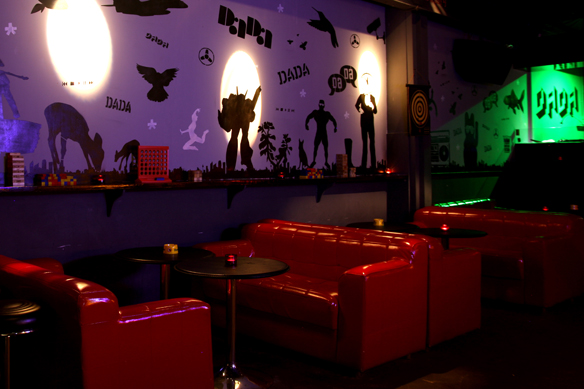 I went bar hopping with a friend the other night and we ended the evening at a dive bar called Dada. Surprisingly, there was no one there when we arrived and instead of taking off, I thought it would be fun to grab a drink and take a few pictures. I mean, how often do you find an empty bar where they'll let you take pictures?! As you can see, this place had a retro-diner/punk rock theme and just beyond this frame was a projector showing the World Cup. It looked like it could be a really happening place on the weekends, but I guess Tuesday nights just aren't their nights.