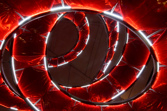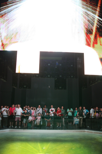 Venezuela’s pavilion wasn’t particularly memorable, but what did leave an impression on me was the open air courtyard with hammocks and small theater areas. Not far from that courtyard was this large glass sculpture hanging from the ceiling. As you can see from the photograph above, it’s a bit mesmerizing and forms a natural frame for the picture.