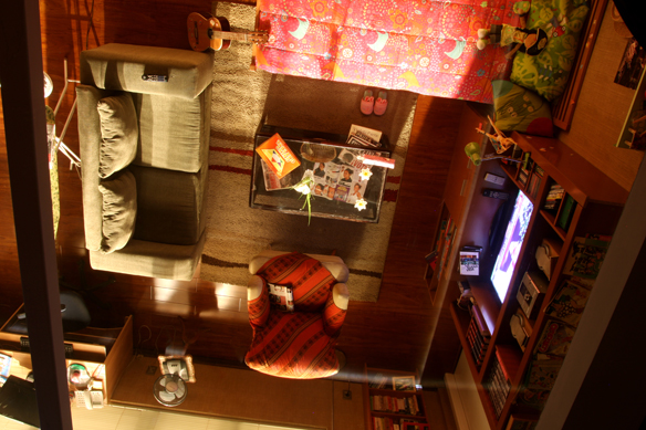 Bienvenidos a Chile! This was, by far, my favorite pavilion. The design team for the pavilion did a great job weaving together Chilean culture with Chile's goals of building greener cities and improving the country's standard of living. For example, this is a picture of a typical Chilean home that someone attached upside down to the ceiling of a room in the exhibit. I thought it was a wonderfully creative way to introduce a slice of daily life to the exhibit. There were a lot of interesting details including a TV playing Chilean TV shows, books, magazines and other daily items on "display" throughout the home.