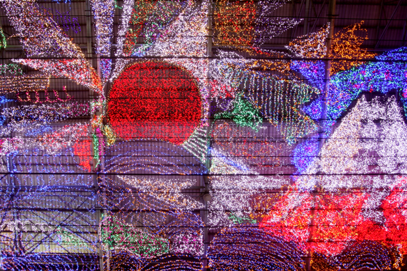 Finally, the photograph above was taken at the entrance/exit at Gate 1. The surface of the roof you see in this photograph was actually a dynamic display. Periodically, different portions of the image embedded into the roof would light up. After I spent some time watching it, I decided it would be cool to set up a long exposure shot to capture what the full image would look like if all the different portions lit up at once. And as a result, we see the black swirls on the purple-colored roofing.